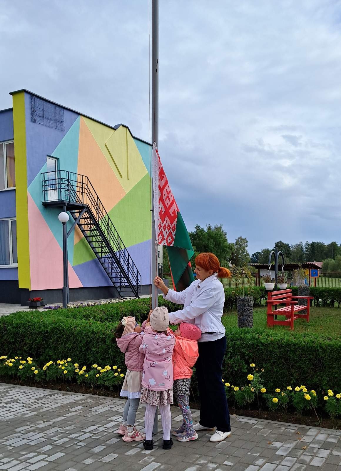 Право поднять Государственный флаг Республики Беларусь было предоставлено воспитателю дошкольного образования Бурцевой Н.А. и воспитанникам старшего дошкольного возраста. С гордостью педагогическими работниками и воспитанниками был исполнен Государственный гимн Республики Беларусь, прочитаны стихи о нашей любимой Родине и единстве. Кульминацией мероприятия стало объединение воспитанников в общий танцевальный флешмоб под песню «Беларусь мая».