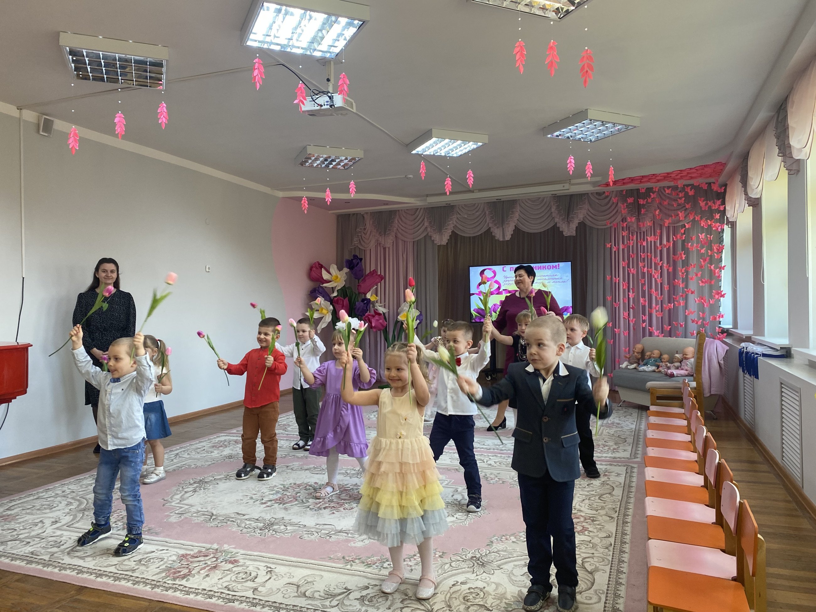 Сегодня в нашем детском саду царила особая атмосфера — волшебная, трепетная, по‑весеннему светлая. Праздник открылся под звуки знакомой мелодии. Дети, держа в руках цветы, торжественно вошли в зал и заняли свои места. Глаза малышей горели волнением и гордостью — сегодня они главные артисты для самых дорогих зрителей. В конце праздника каждый малыш с гордостью вручал свой подарок маме или бабушке, обнимал её и шептал на ухо заветное «Я тебя люблю!».