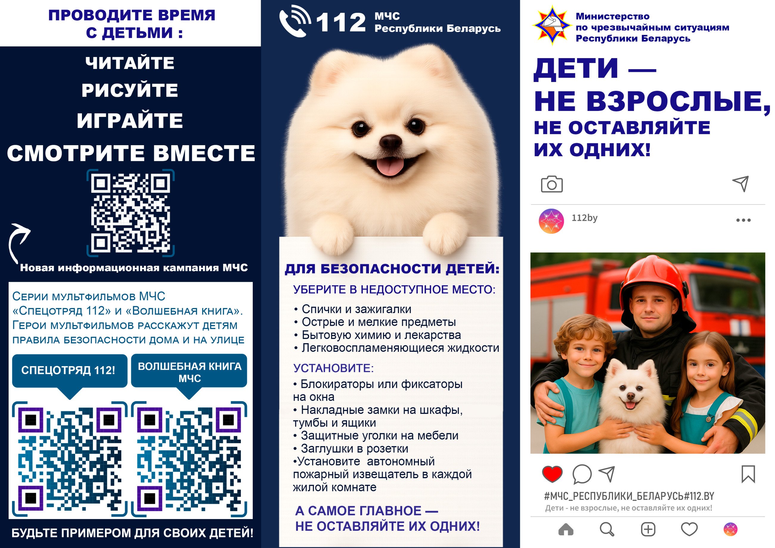Чтобы привлечь внимание родителей к проблеме гибели и травматизма детей дошкольного и младшего школьного возраста на пожарах и водоемах, НИИ ПБиЧС МЧС Беларуси при поддержке Представительства Детского Фонда ООН (ЮНИСЕФ) в Республике Беларусь разработана новая информационная кампания «Дети – не взрослые! Не оставляйте их одних!».