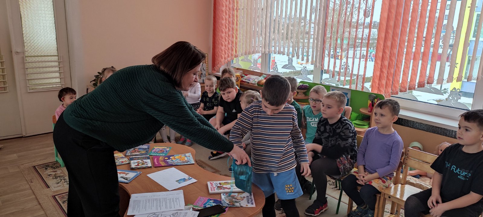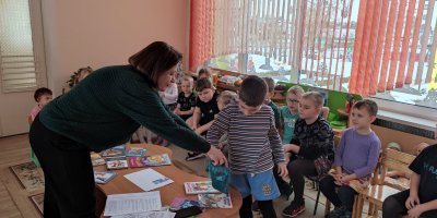 30 января воспитанники старшей группы вместе с библиотекарем филиала «Районная детская библиотека» Н.Л.Серехан поиграли в литературное лото. Темой игры стали любимые «Снежные истории» – сказки, мультфильмы, загадки на зимнюю тематику. Участники поочерёдно вытаскивали пронумерованные карточки, отвечали на вопросы и складывали из фрагментов картинку-пазл.