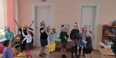 После общей игры-разминки, в которой всей группой лепили воображаемого снеговика, самые смелые и артистичные разыграли небольшую зимнюю сказку.